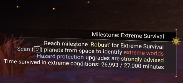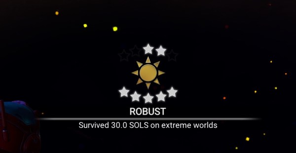 I can probably knock those out with some effort… should I choose to apply it. We shall see. The one things I did lock on to a bit over the last week was one of the extreme survival milestones. All I had to do was get to “Robust” and I would get one of those four missing Steam achievements.