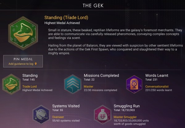 There are still some things to wrap up with the Gek, for example. Nothing that grants me anything special, but I think we’re all aware that, given the right circumstances, I’ll working on making the numbers go up just to see the numbers go up. Better go smuggle a bit more.