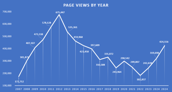 TAGN Page Views by Year 2025 Edition (as of post time)