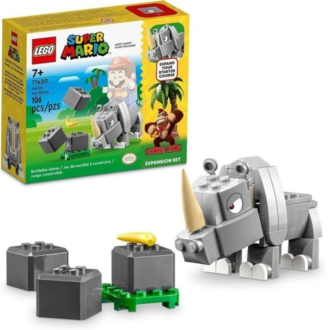 Rambi the Rhino is a 106-piece set that features the beloved longtime character and a few stackable rocks to break–as long as DK doesn’t smash through them first. You can place the Donkey Kong and other Kong Lego figures on his back, but like most Lego Super Mario sets, Rambi was designed with Mario/Luigi/Peach figures in mind.