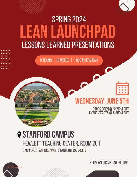 Join us for the final presentations of our two Stanford classes this Tuesday June 4th and Wednesday June 5th.